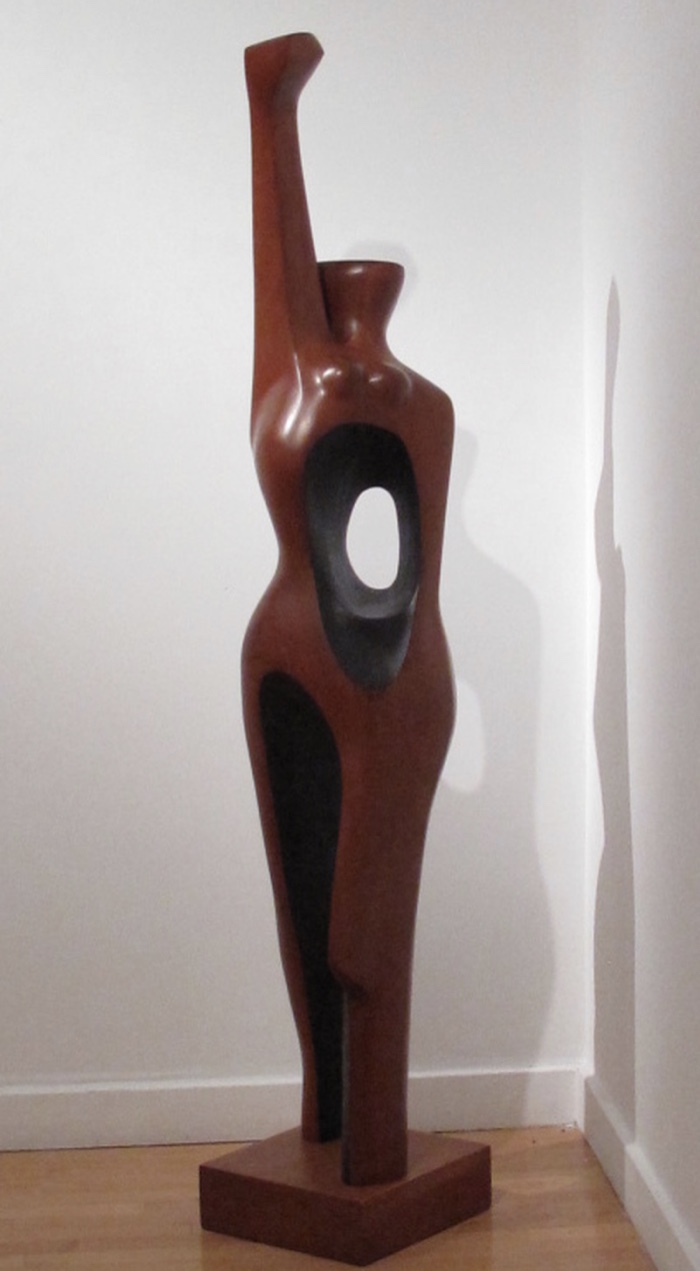 Catlett’s sculpture Homage to My Young Black Sisters is one of Catlett’s better-known works: a life-sized personification of feminine black power. It’s a brown figure of a woman standing defiantly upright, fist raised in the air.***