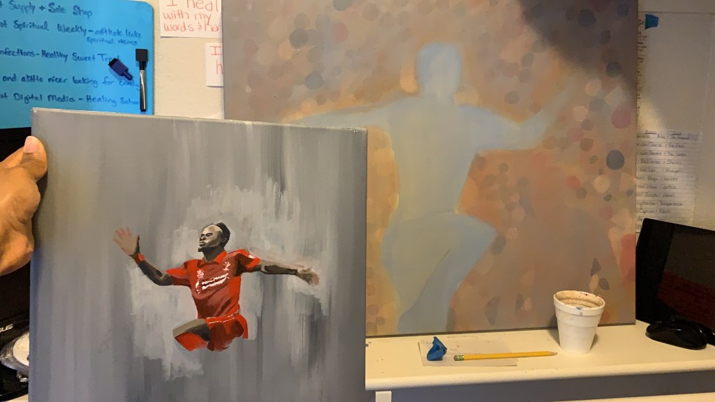 I was commissioned to paint an image for Sadio Mané back in early May. This is my first sports themed painting. I was a little intimidated because I hadn’t completed a work like this before however it went over very well. Sports and athletic images became an interest to me.