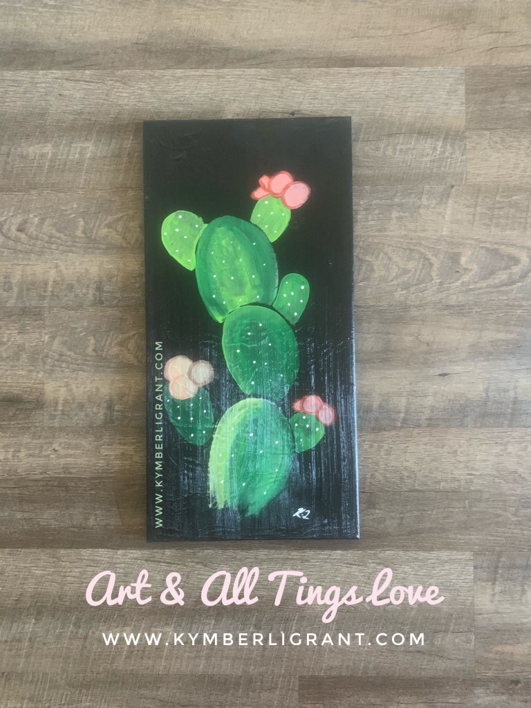 These glosses come in a variety of shines, from low to high. The gloss even comes thinner or thicker depending on what your project calls for. The gloss can even give your acrylic paints a heavy body, for example thicken the paint and add texture. If you look closely at the cactus painting below, you can see the application of the gloss reflecting light. You can even see the paint brush strokes. I enjoy this type of look. Some glosses act as a protective coating too. You can do so much with gloss. Try it out sometime!