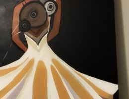 I fixed the image into a frame at my mother’s home. Cropped. Slightly elongated. I wanted to see how the colors would compliment her interior space. Not sure yet if this work is meant for her space. She loves it, so that’s a good start.